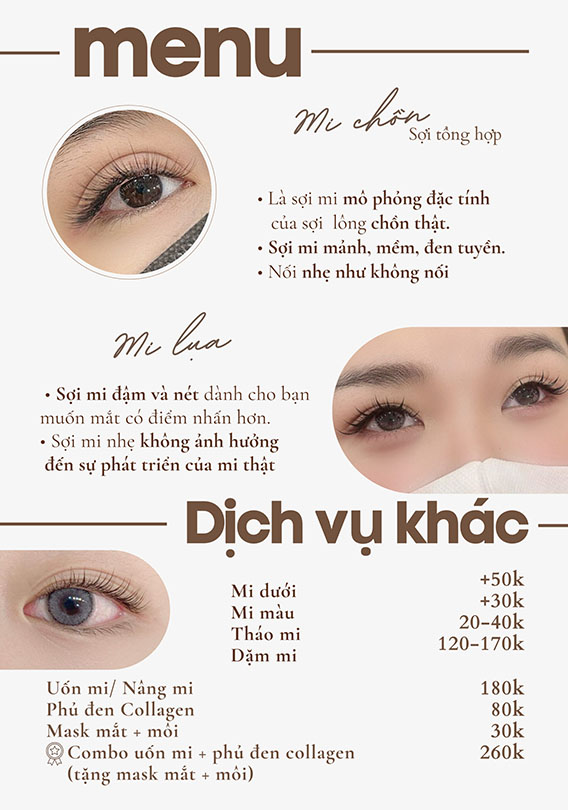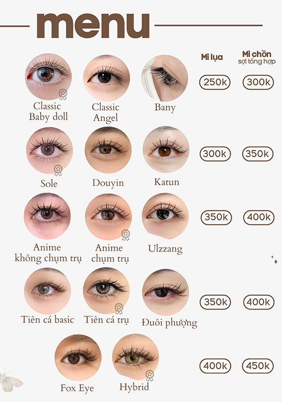 • Dịch vụ đa dạng, phong cách Á – Âu: Khách hàng có thể lựa chọn nhiều kiểu nối như mi volum, hybrid, nối mi thiết kế theo cụm… từ thanh lịch đến quyến rũ.